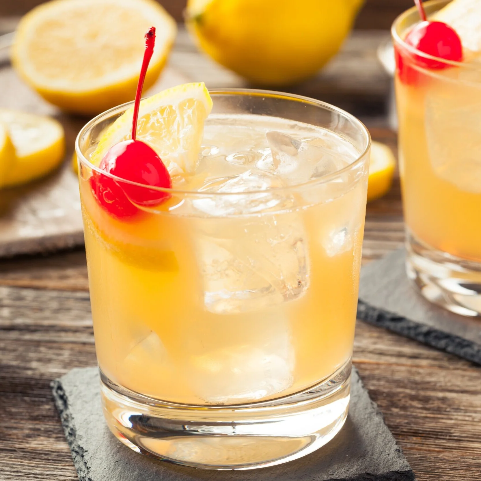 Garnish with: orange slice and/or maraschino cherry