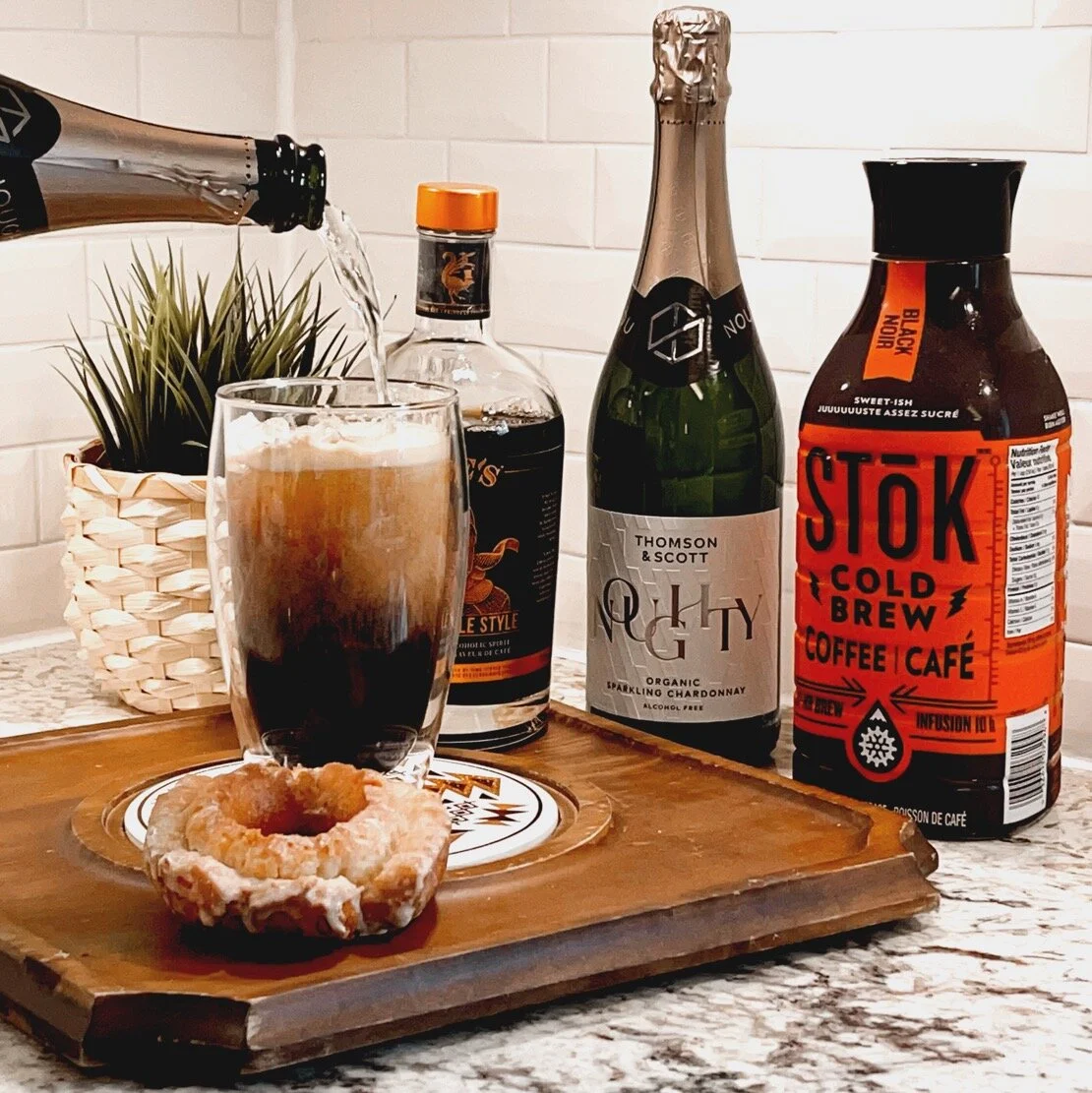Mix the first two ingredients in a glass with ice, and top with the sparkling wine. We promise, cold brew will never be the same again!
