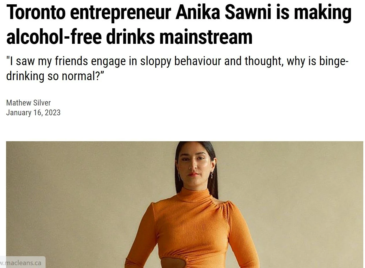 From MacLean’s: Anika Sawni founded Grüvi (along with her brother) after deciding that the overindulgence of her early university years wasn’t for her, and realizing that she wanted to drink something more interesting than soda water.