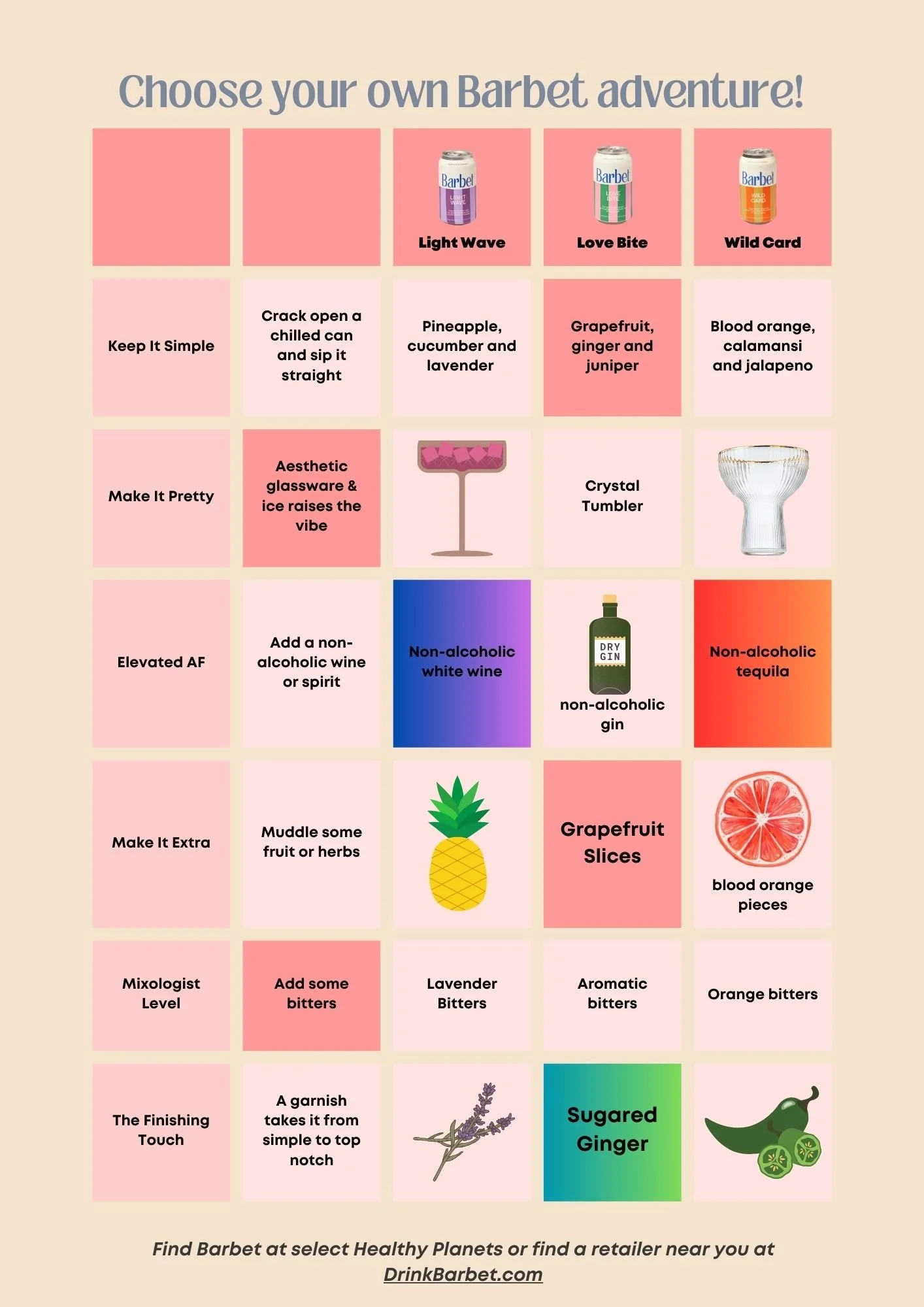 The moral of this story? You can make it easy for yourself during Dry January by pouring Barbet into some nice glassware, or let your drink creativity and flair shine with the endless possibilities the three flavours provide. So go ahead and choose your own mocktail adventure! (Find Barbet near you HERE).