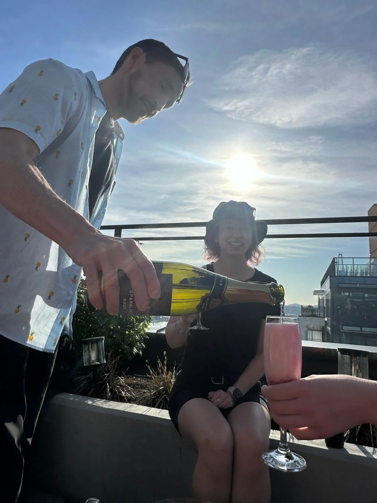 Liam models his pineapple shirt on another OCCASION, pouring his favourite loxton sparkling wine.
