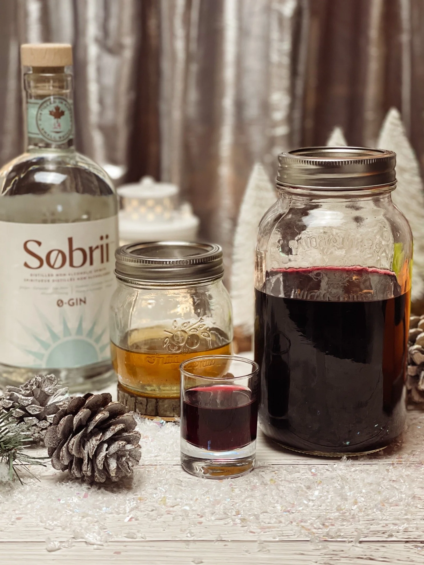 Sobrii 0-Spirits is a Canadian non-alcoholic spirits brand that makes a mouth-watering, herbal non-alcoholic gin. It’s made with juniper berries, star anise, coriander, allspice and ginseng. Because of this unique flavour profile, Sobrii 0-gin is a perfect match for winter flavours. The pomegranate juice adds a perfect touch of bitterness.