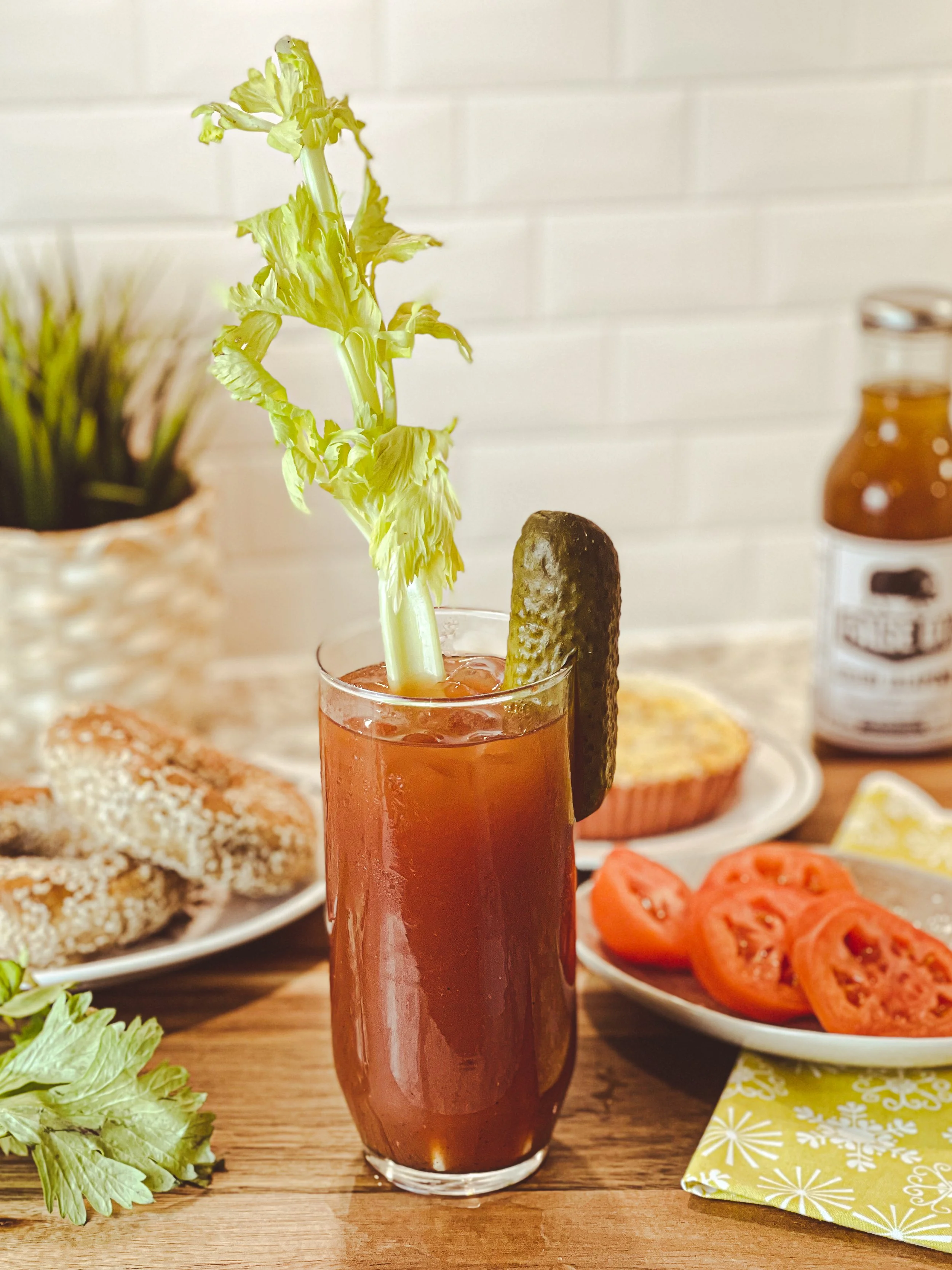 /It's the first weekend in January, and you've committed to Dry January. Maybe you're still feeling rough from New Years Eve, and maybe you're in the mood for something brunchy. We love Caesars because they’re a snack in a glass - but is anyone else tired of the “virgin caesar” (which is basically just a cup of Clamato juice)? By adding in hot and spicy ingredients helps your mouth AND your mind forget that your drink doesn't have any vodka. That’s why False Ox Celery Jalapeno shrub is going to be a total game-changer for you!