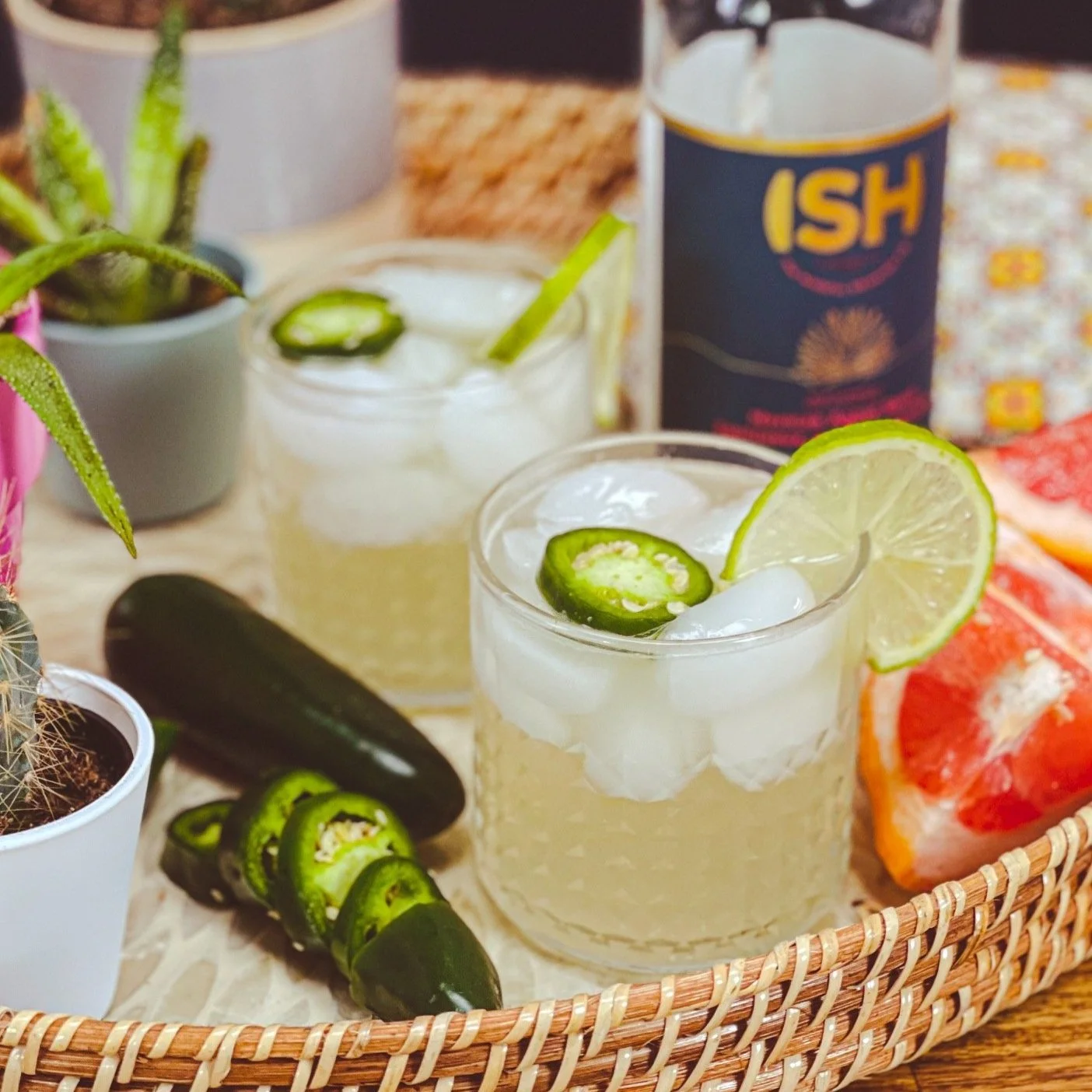 The two options that we like in this recipe is Free Spirits Spirit of Tequila because of it’s reposado style, and the ISH Mexican Agave Spirit which has a really nice smokiness that pairs really well with the grapefruit and jalapeno.