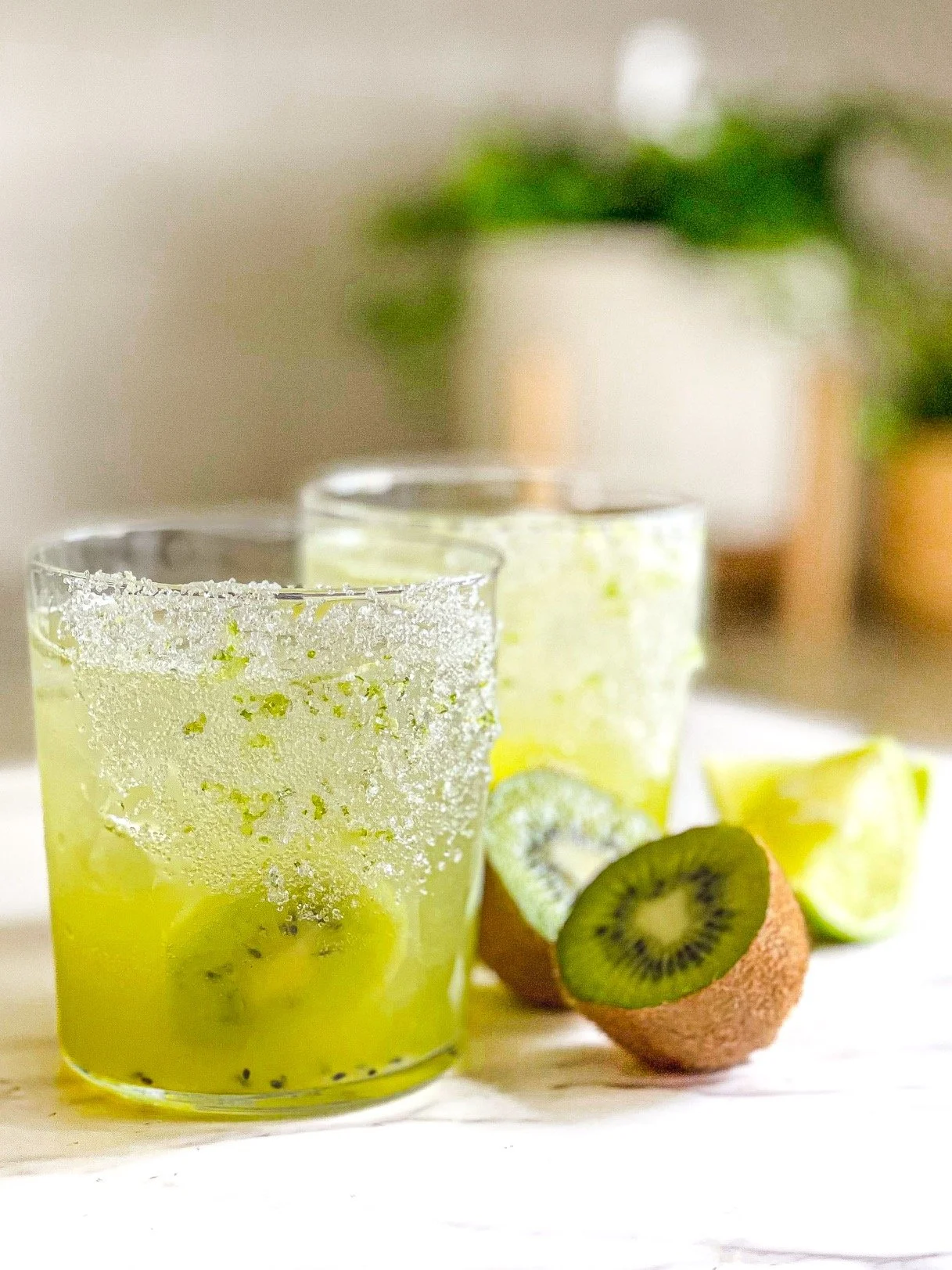 /What do you do with a supersize container of kiwis that no-one in your family is eating? Make margarita mocktails obviously. As I get older, I’ve become more and more conscious of food waste and its impact on the planet. My good friend Puneeta over at Maple & Marigold is a good resource for how to help yourself and the planet by using up what you’ve got in your fridge. She’s always on my mind when these situations come up!