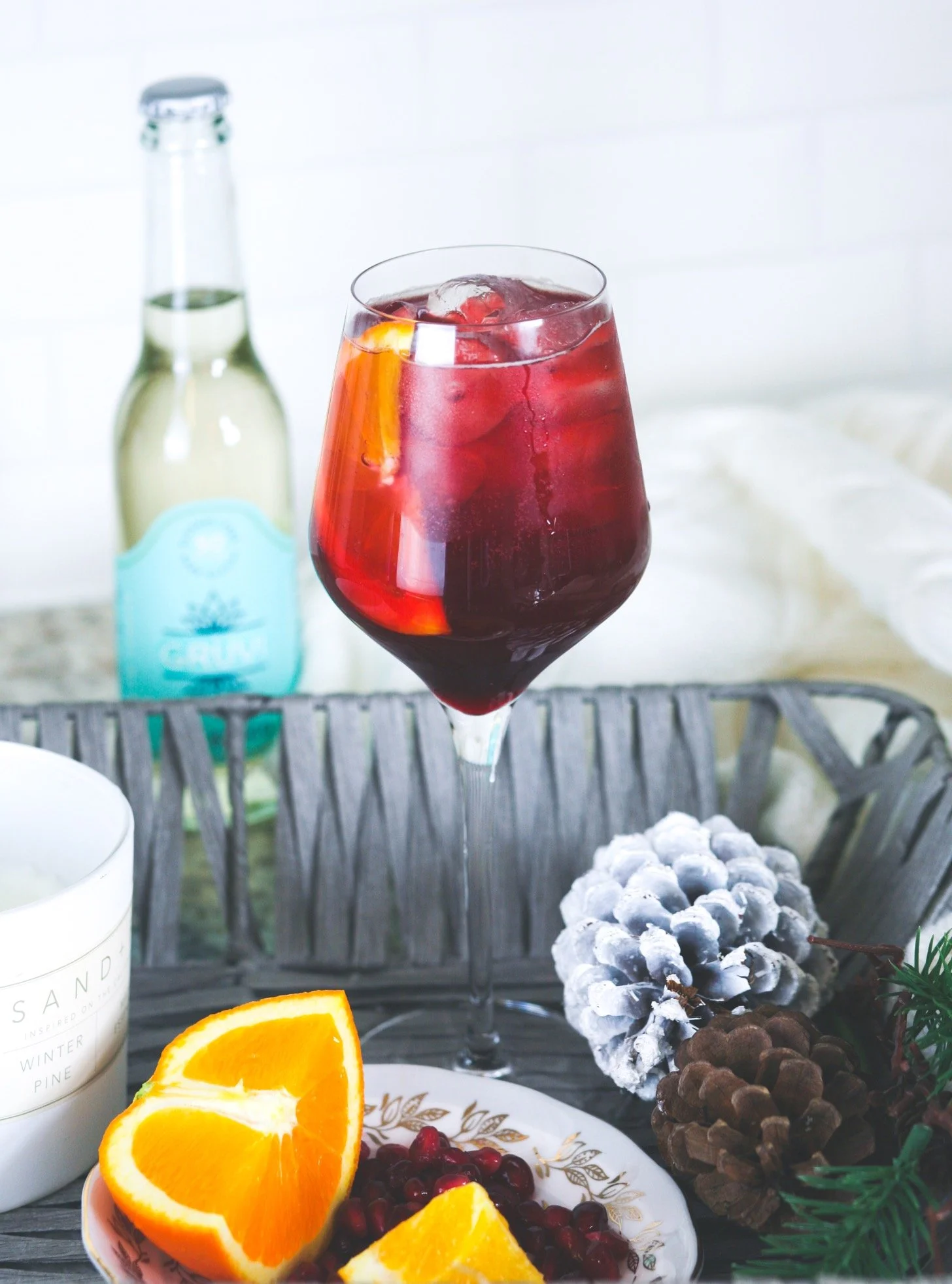 /You're probably familiar with summertime favourite the Aperol Spritz, a delightful combination of orange bitter and sweet prosecco. This drink can make the transition to winter with our favourite winter fruits - pomegranate or cranberry. It's easy to make this a non alcoholic cocktail, especially if you can find Gruvi Secco at your local grocery store (see bottom of page for where to buy in Canada). Gruvi single serve makes it extremely easy to make one or two spritzes without having to open a big bottle of sparkling wine. We love it mixed into cocktails like this, and it's a perfect match with the bitter orange and the juicy pomegranate flavours.