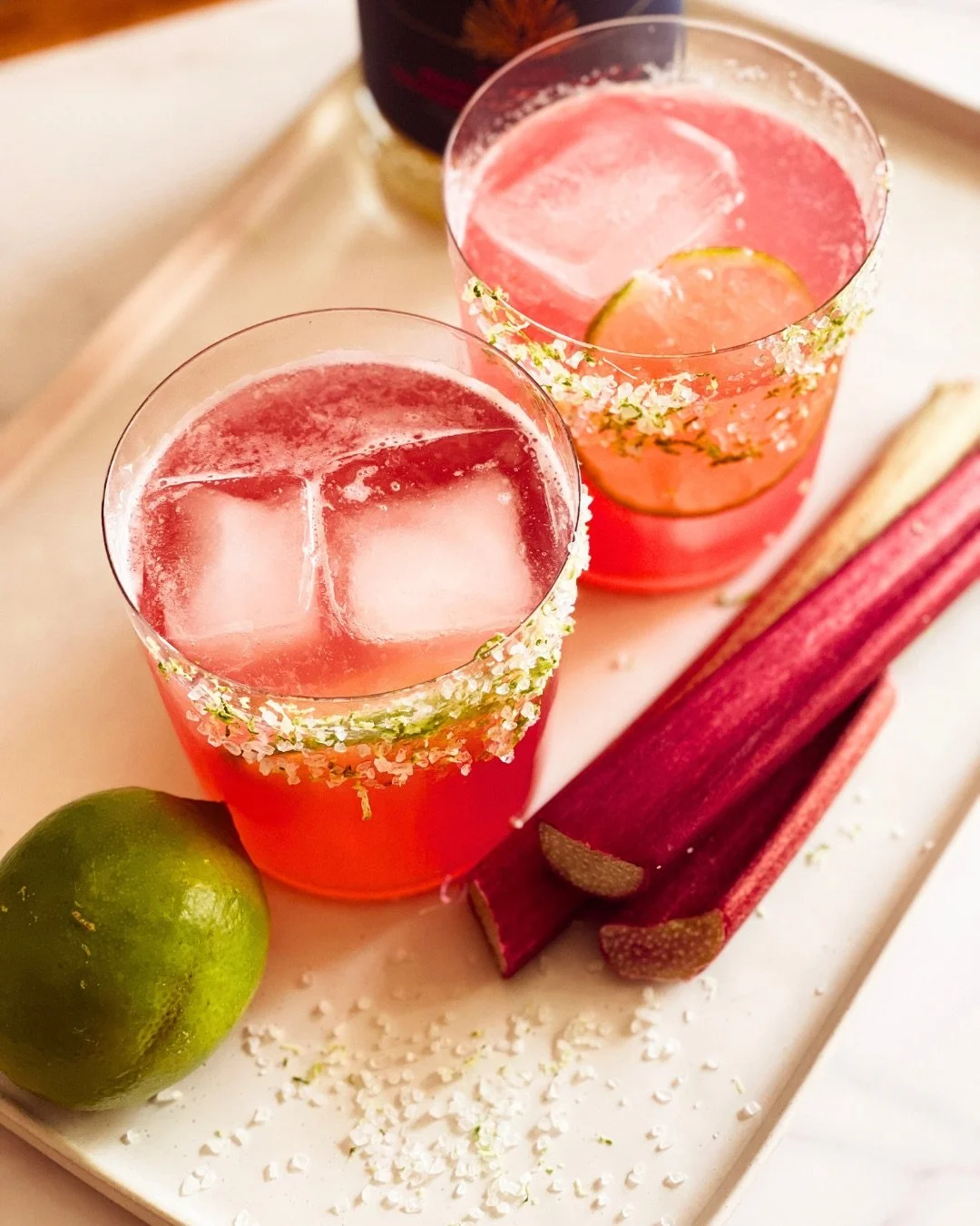 This non-alcoholic rhubarb margarita mocktail is a fun twist on the classic margarita, freshened up for the spring season.