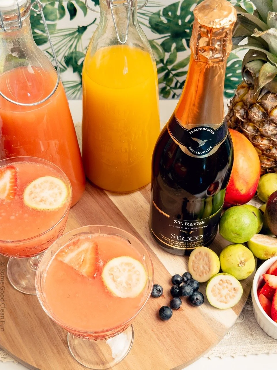 There are great tasting non-alcoholic bubblies, and if you want to elevate it even more, swap out the regular orange juice for tropical fruit juice for a really special treat.