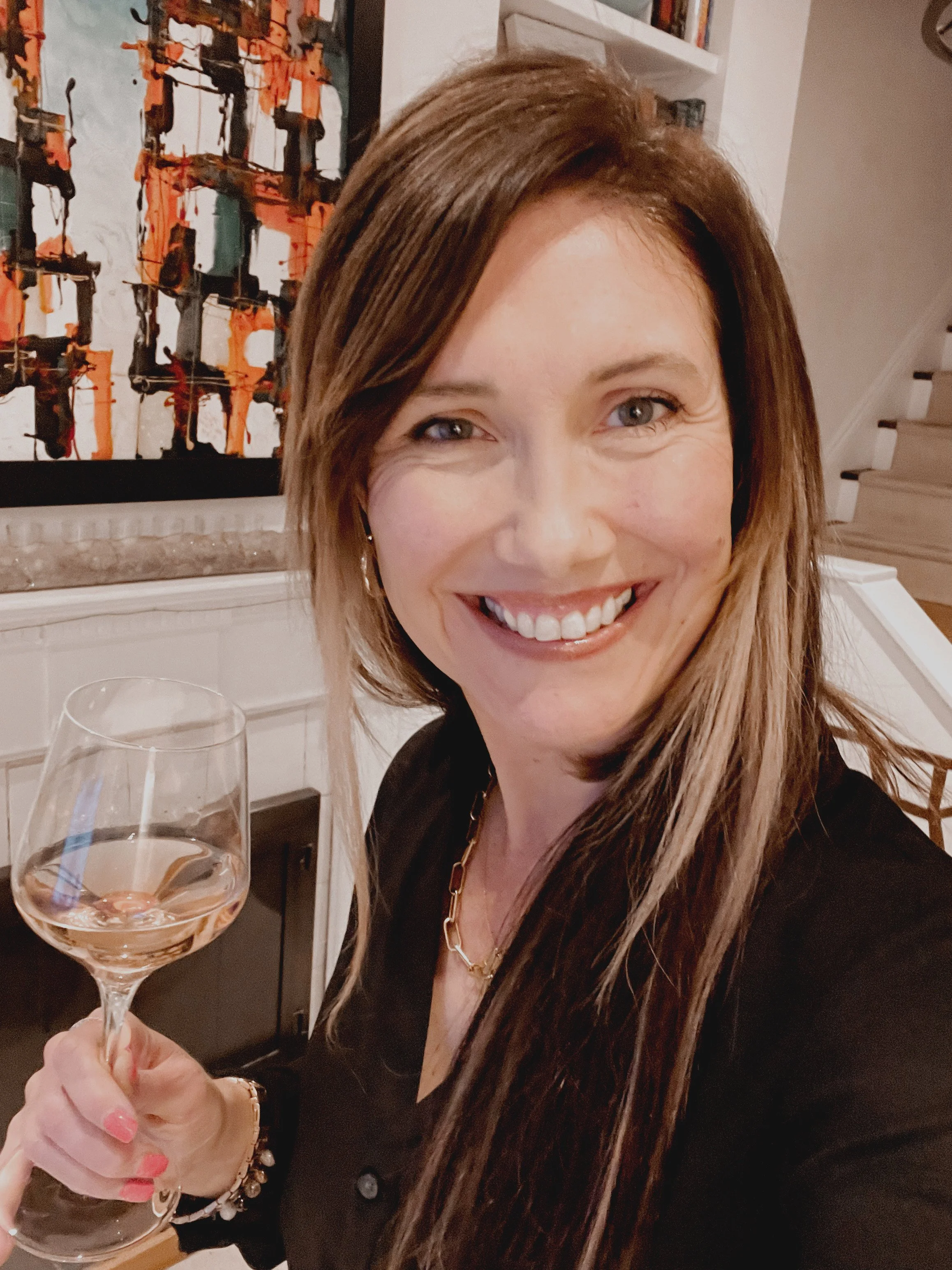 Me, truly enjoying a glass of Eins Zwei Zero wine after a long day. Love at Last!