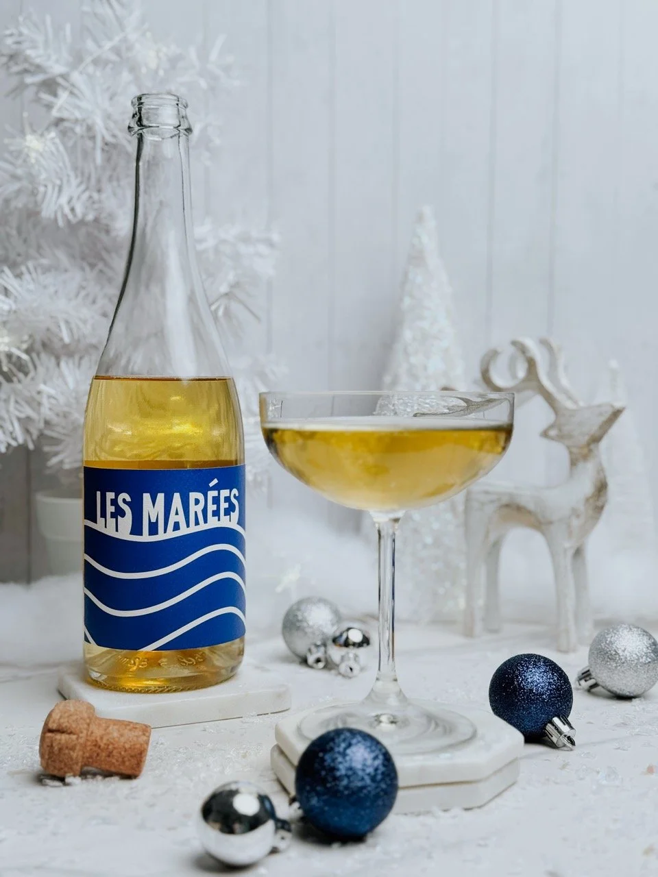 The basics? Les Marées is made from 100% chardonnay grapes grown in a coastal region of the South of France - close to where our friends at Moderato are producing their delicious wines. I’m not sure if it’s dealcoholized there or brought here to the U.S. but the grapes and fermented wine begins in an organic French vineyard.